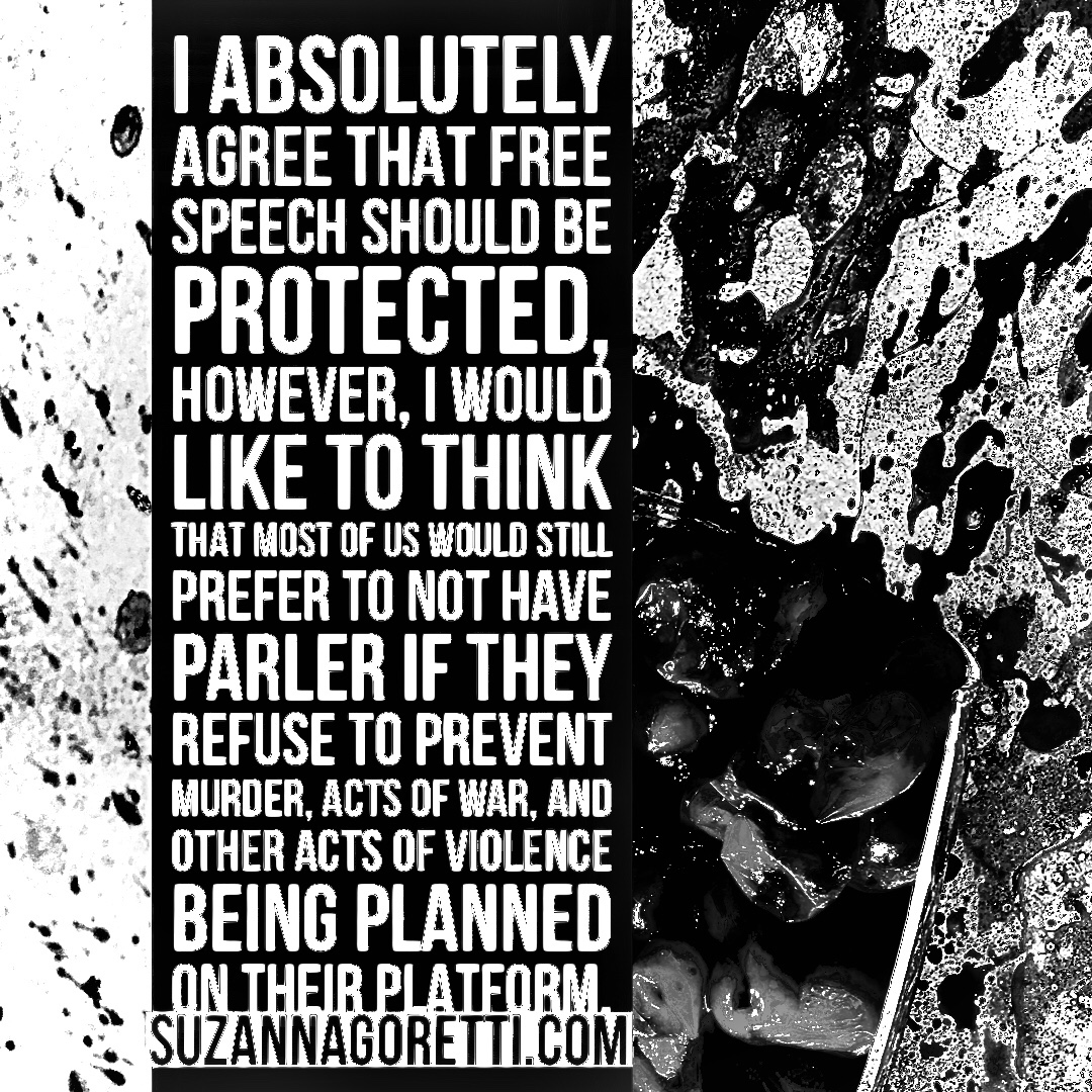 In conclusion, I just want to say that I absolutely agree that free speech should be protected, I have a vested interest in it, especially because of other controversial issues I differ from popular opinion on, however, I would like to think that most conservatives would still prefer to not have Parler if they refuse to prevent murder, acts of war, and other acts of violence being planned on their platform.