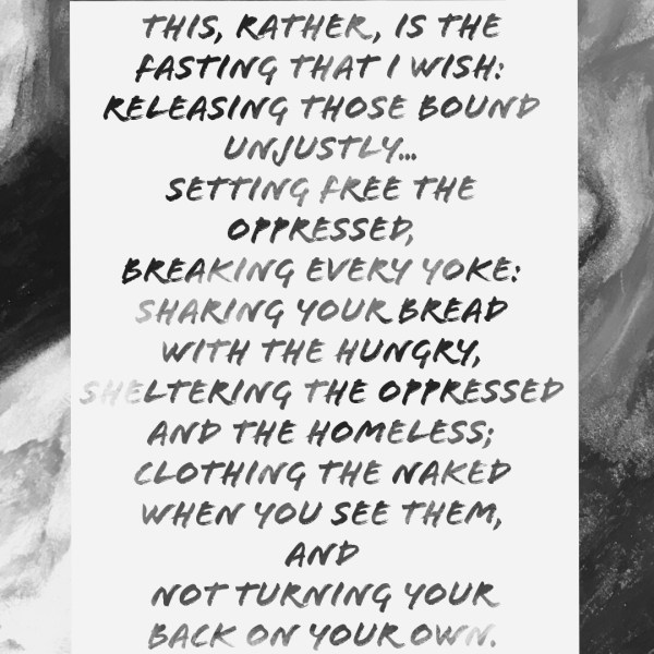 Isaiah 58 changed my life and understanding of what God wants from His people. It begins with God telling Isaiah to tell His people to “Cry our full-throated and unsparingly...tell them their wickedness and the House of Jacob their sins.” He is not mincing words here. They listen, they cry out and ask Him, “Why... Continue Reading →